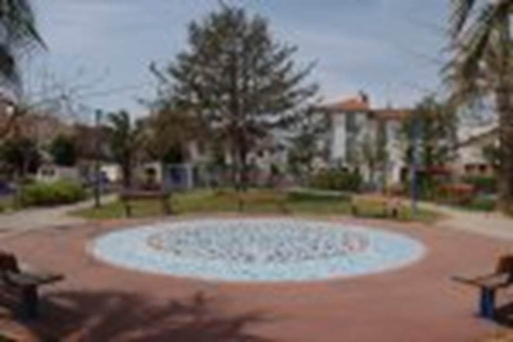 Autour d'une grande place décorée de mosaïques, ce jardin décline toutes les nuances de bleus, depuis le mobilier urbain jusqu'aux diverses variétés de plantes et arbres à dominantes bleutées : Jacarandas, palmiers bleus, etc...